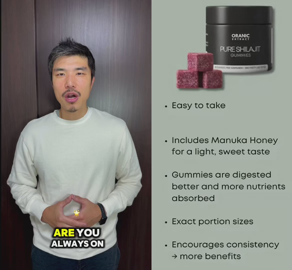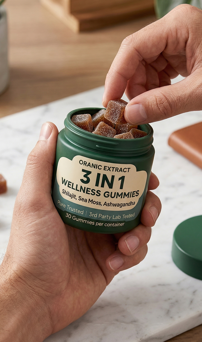 Our plant-based vitality gummies combine powerful extracts like Shilajit, Sea Moss, and Ashwagandha to support energy, strength, mental clarity, and overall wellness — helping you feel stronger, sharper, and more balanced every day.